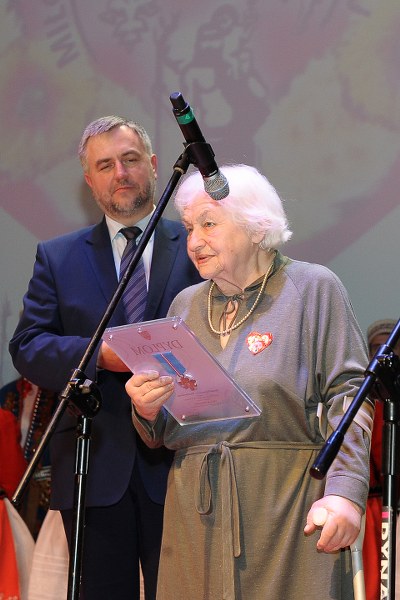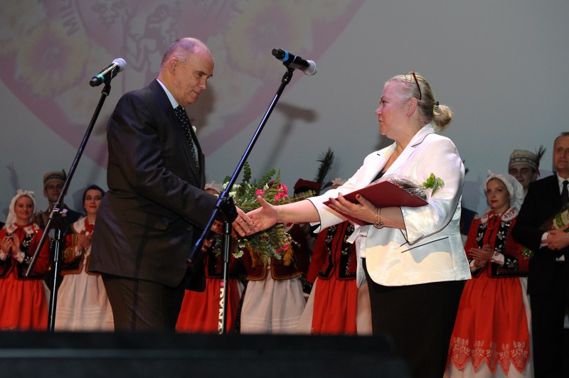 Odznaczenie dla Towarzystwa Miłośników Wilna odebrała z rąk Marka Woźniaka - Marszałka Województwa Wielkopolskiego, Halina Chmielewska - Wiceprezes TMWiZW