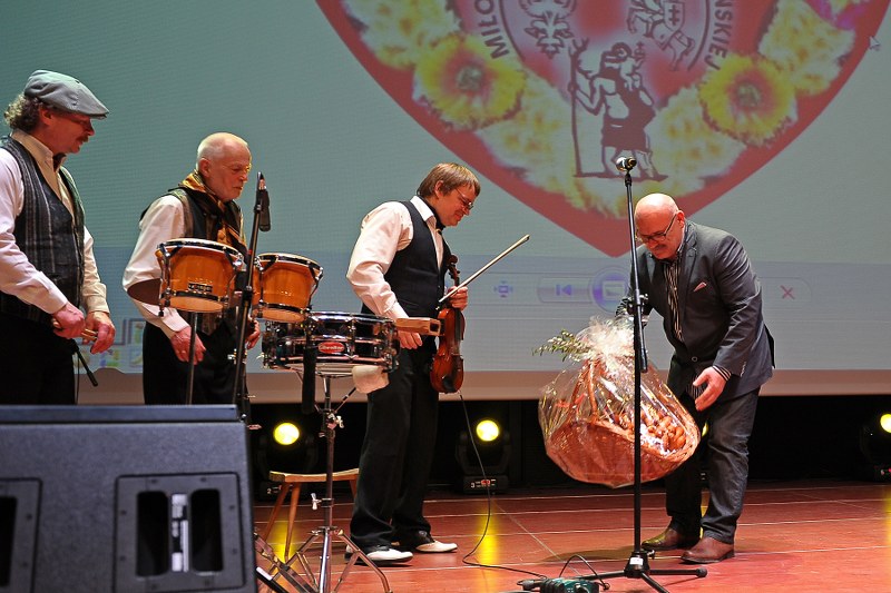 Kapela Wileńska z Jerzym Garniewiczem po otrzymaniu z rąk Ryszarda Grobelnego - Prezydenta Poznania nagrody Żurawina 2014