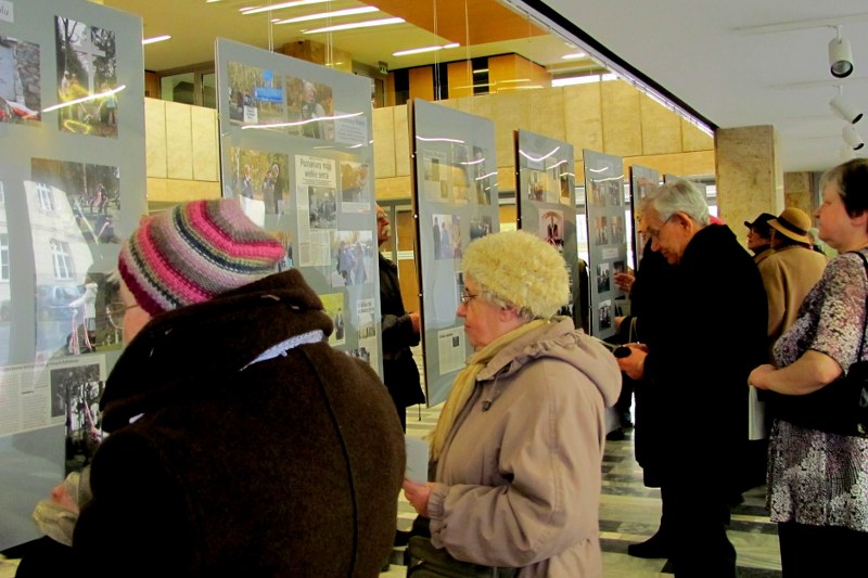 Pan Wojewoda z zainteresowaniem oglądał wystawę dokumentującą 25-lecie działalności poznańskiego oddziału Towarzystwa Miłośników Wilna